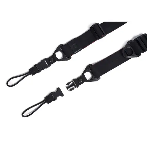 Zwei Befestigungsmöglichkeiten: Schlaufen- und Ringbefestigung an Flachösen und mit Dreiecksringen. Zum Befestigen der Gurtenden an der Kamera lässt sich der Gurt über Schnellverschlüsse problemlos öffnen. Geeignet für DSLRs und spiegellose Systemkameras.